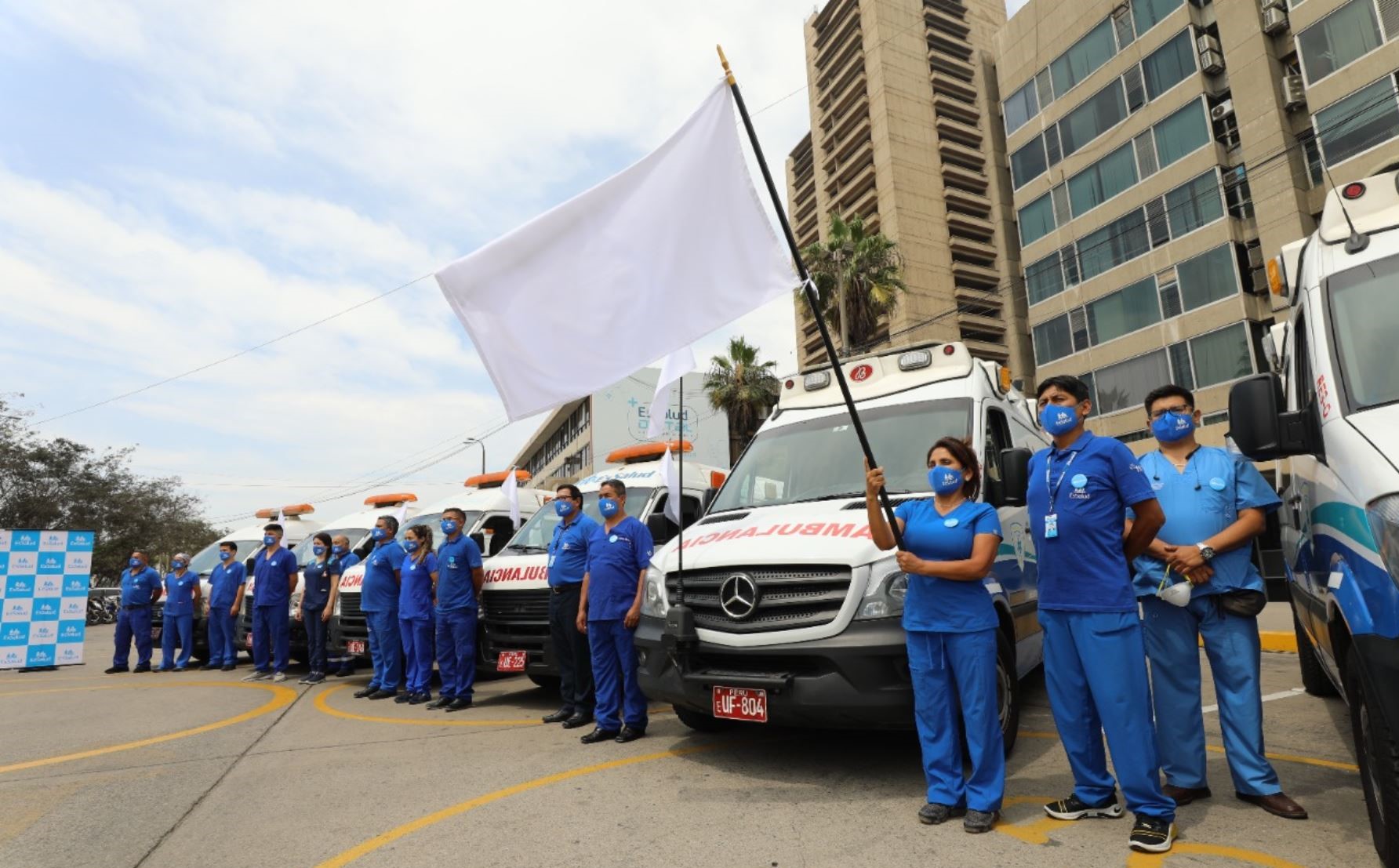 El titular de EsSalud colocó banderas blancas a las unidades e invocó a todos los ciudadanos a respetarlas, pues en ellas viajan médicos y especialistas prestos a salvar la vida de cualquier peruano que lo necesite, no solo los 12 millones de asegurados, sino también los no adscritos al seguro.