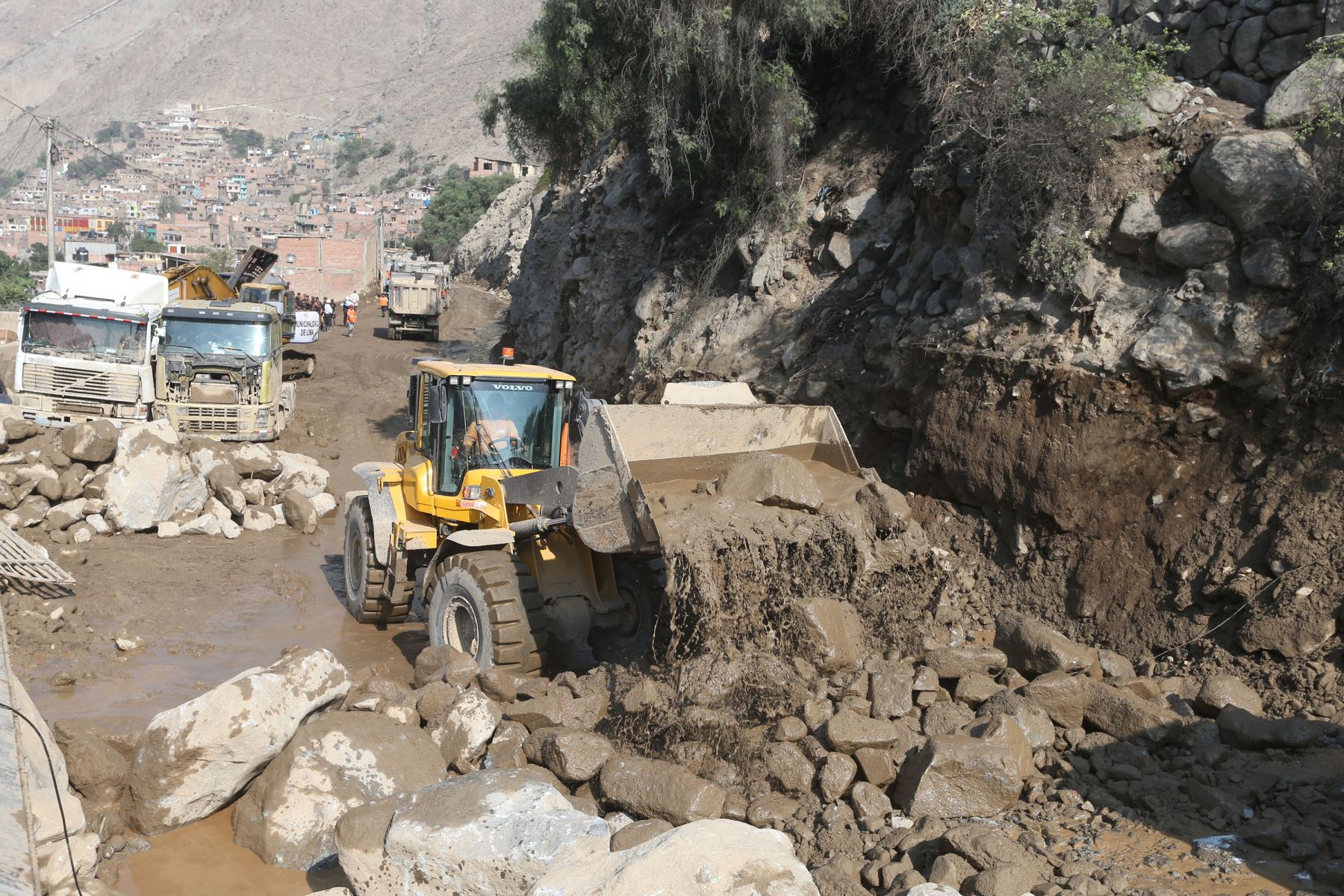 Los daños ocasionados por el desborde del río Rímac a la altura del kilómetro 83 de la Carretera Central mantienen cerrada la vía pese al esfuerzo de las autoridades.