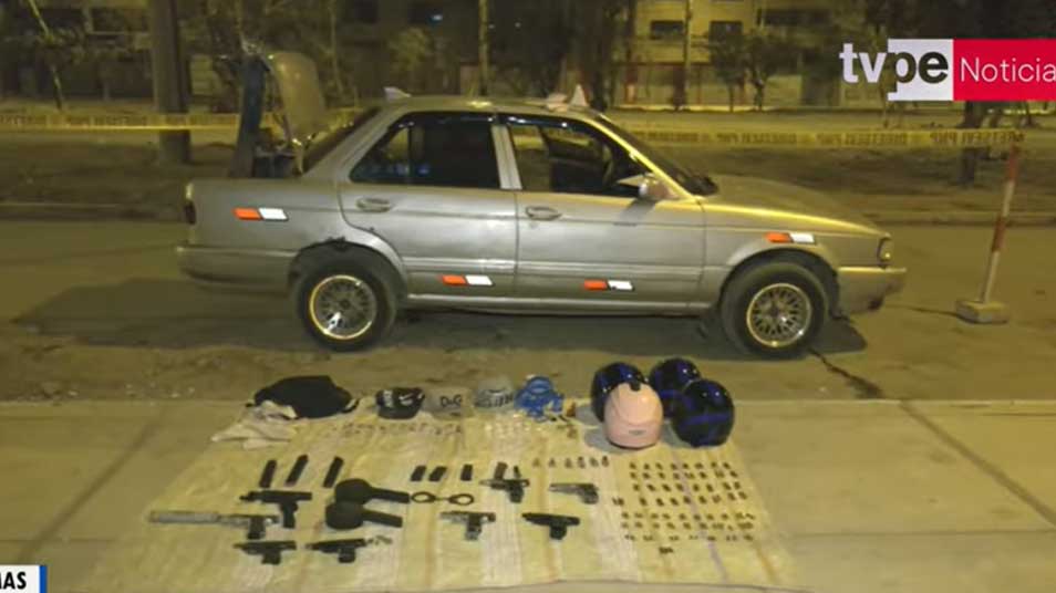 En su poder también se encontró ocho armas de fuego, caserinas, silenciadores, municiones, drogas, cascos de motocicletas y un vehículo en el que se desplazaba. "Un arsenal de armas de fuego. Conocíamos que este sujeto, en base a una disposición criminal, realiza actividades de sicariato", agregó