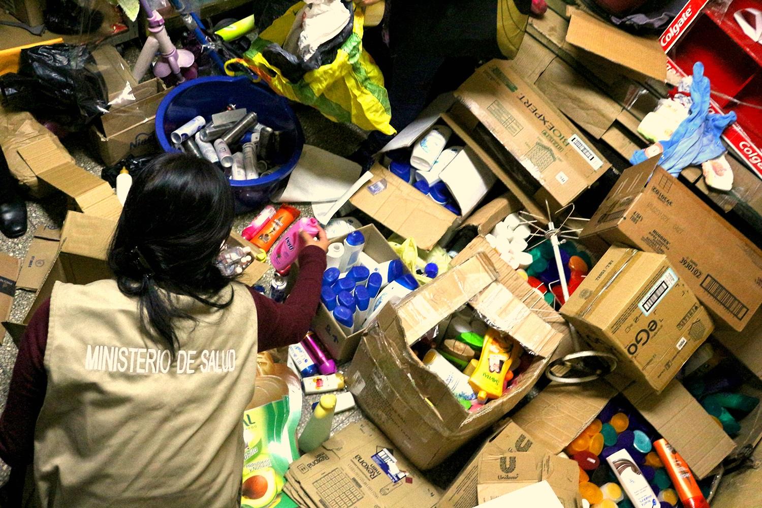 “Luego de un trabajo de inteligencia se intervino seis tiendas en donde se encontró gran cantidad cosméticos y productos sanitarios almacenados en pésimas condiciones. También se encontraron productos vencidos, adulterados, sin registro sanitario y en mal estado de conservación. Los productos fueron incautados para su análisis y posterior destrucción”, explicó Marisa Papen, jefa del equipo contra el comercio ilegal de la Digemid.