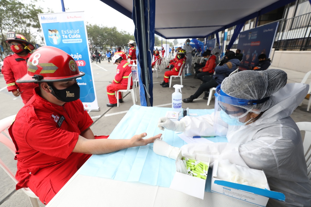La presidenta ejecutiva de EsSalud, Fiorella Molinelli Aristondo, supervisó el inicio del Megaoperativo para la detección temprana de la COVID-19 con 1,000 pruebas moleculares a motorizados que realizan el servicio delivery, así como a miembros de la Policía Nacional y del Cuerpo de Bomberos del Perú.