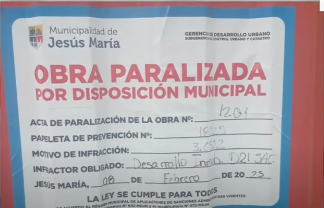 La Municipalidad de Jesús María paralizó la obra. Foto: captura.