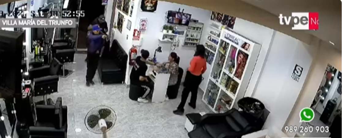Tres delincuentes roban barbería en Tablada de Lurín. Foto: TV Perú Noticias.