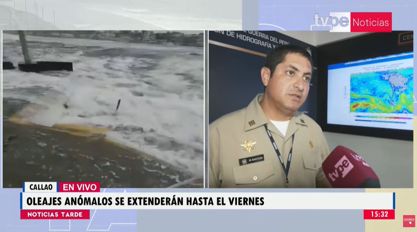 “Actualmente nos encontramos en oleajes anómalos. Este oleaje ha comenzado desde el día de hoy en la mañana, en el sur del Perú. Vamos a tener oleajes de moderada y con intermitencia a fuerte intensidad en la zona sur del Perú y en la zona centro y norte del Perú, a partir del día de mañana, estaría llegando con una intensidad moderada en cuestión de oleajes”, señaló en declaraciones a TVPerú Noticias.
