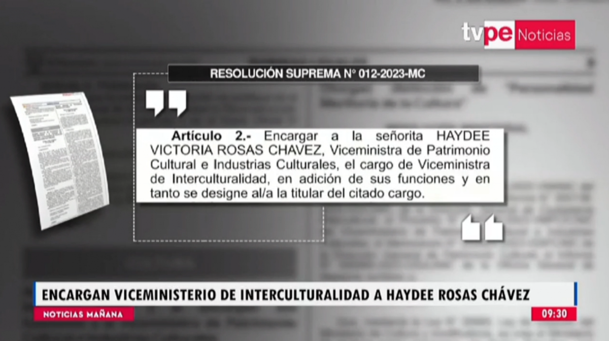 El documento fue suscrito por la presidenta de la república, Dina Boluarte, y la ministra de Cultura, Leslie Urteaga. Foto: Captura TVPerú