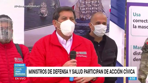Asimismo, el titular de Defensa y la ministra de Salud, Pilar Mazzetti, estuvieron supervisando una acción cívica en el A. H. Cuernavaca de Comas. En donde vecinos de la zona reciben servicios de tamizaje de COVID-19, descarte de anemia, vacunación contra la influenza y el neumococo, entre otros.