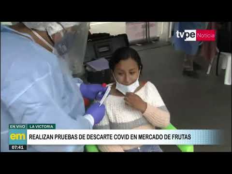 Personal del Ministerio de Salud (Minsa) realizó pruebas de descarte por COVID-19, en el mercado de frutas de La Victoria. El objetivo es identificar a los comerciantes contagiados y tomar nuevas medidas de protección en los centros de abasto. En esta campaña de descarte se puso a disposición mil pruebas moleculares.