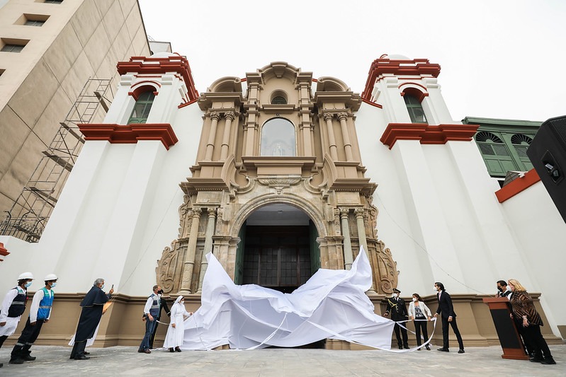 El alcalde de Lima, Jorge Muñoz, develó la portada restaurada de la Iglesia de Copacabana, uno de los santuarios más antiguos del distrito del Rímac, que tiene como imagen a la virgen de Copacabana, venerada por la población limeña por ser protagonista de muchos milagros y que se mantuvo intacta durante el terremoto de 1687, cuando el templo se destruyó por completo.