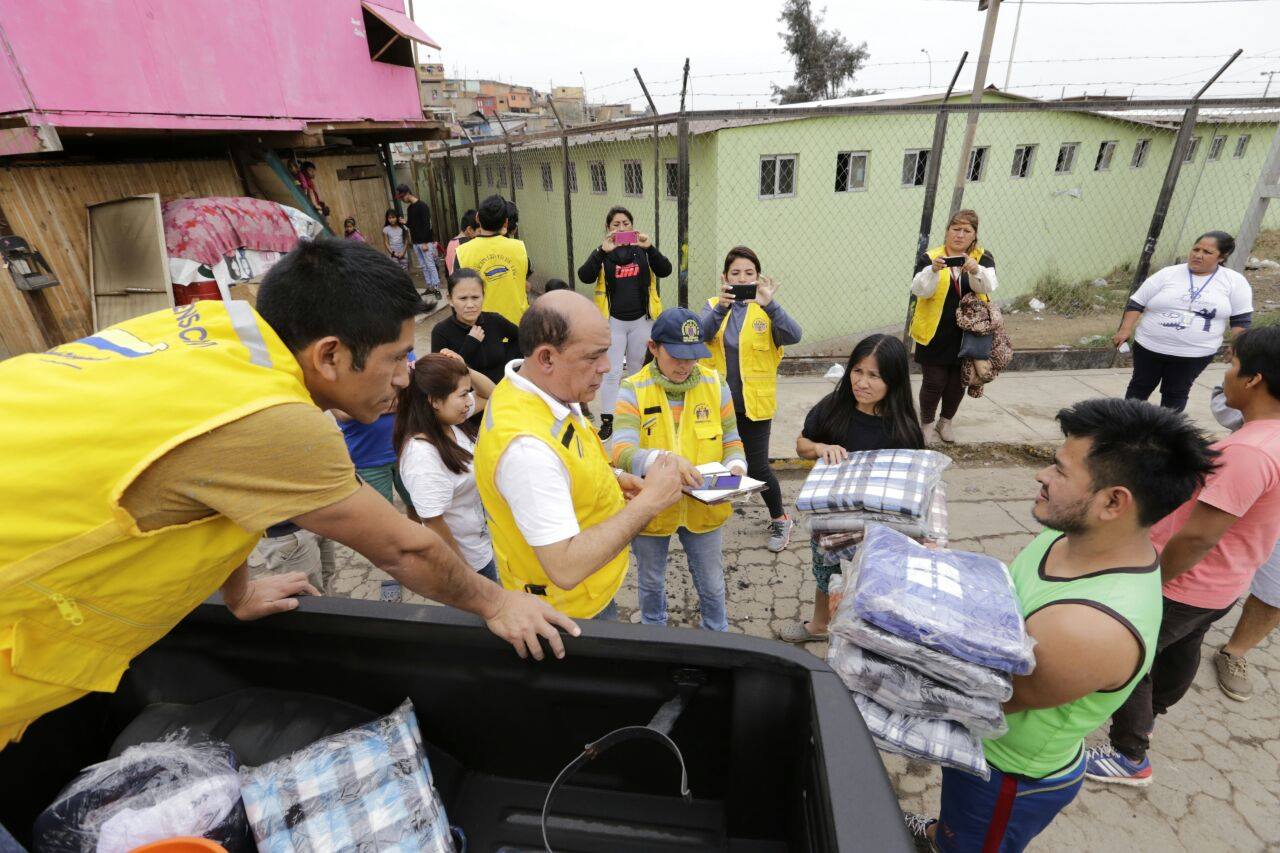 Frazadas, útiles de limpieza, de aseo personal y utensilios de cocina fueron entregados en forma inmediata por personal de Defensa Civil de la comuna limeña por disposición expresa del alcalde de Lima, Luis Castañeda Lossio informó el subgerente de Defensa Civil, Mario Casaretto.