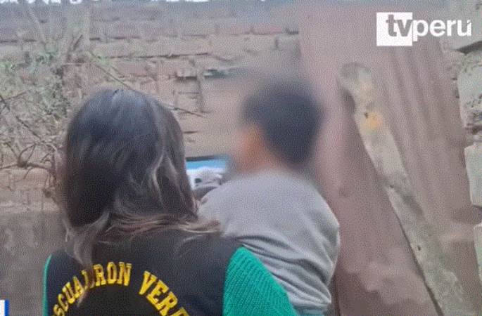 Menor de dos años fue rescatado por la Policía Nacional de una vivienda que servía como fumadero de droga. Foto: TVPerú Noticias.