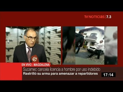 La Sucamec canceló la licencia para portar armas de fuego a José Daniel Córdova Cáceres, quien hizo uso indebido de la misma para amenazar a dos repartidores de alimentos, de acuerdo a unas imágenes que se dieron a conocer en las redes sociales.