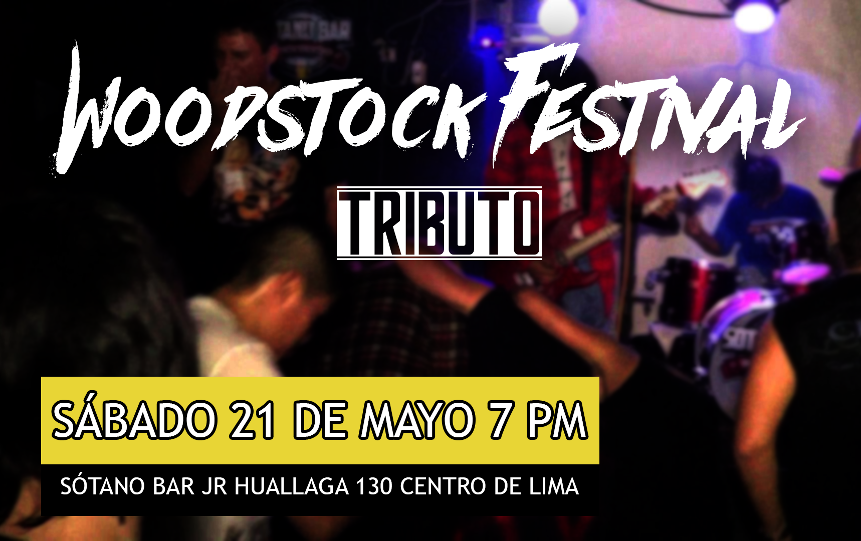 Nueve bandas en escena se unen para dar vida al Woodstock Festival Tributo que se llevará a cabo en el Sótano Bar, ubicado en el jirón Huallaga N° 130 (frente a la Plaza de Armas del Centro de Lima), este sábado 21 de mayo desde las 6 de la tarde.