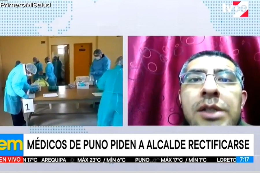 El Dr. Vidmar Mengoa, decano del Colegio Médico de Puno, calificó de "preocupante e indignante" las declaraciones del alcalde provincial de esa ciudad, Martín Ticona, quien pidió prisión preventiva contra los médicos y enfermeras que abandonen los hospitales para irse a trabajar en las clínicas privadas en medio de la pandemia del coronavirus.