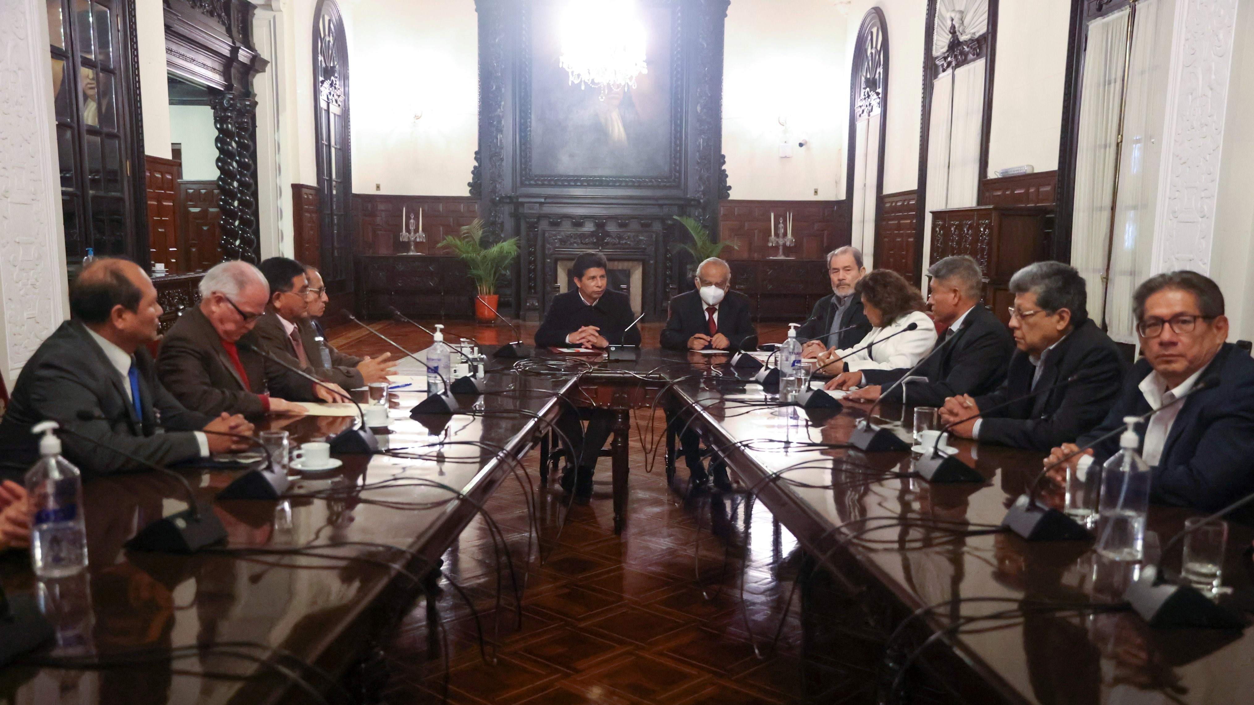 El presidente Pedro Castillo se reunió este jueves con los titulares de la Asociación de Universidades Nacionales del Perú y la Federación de docentes Universitarios, a fin de fortalecer las políticas públicas de Estado en favor de la educación superior universitaria.