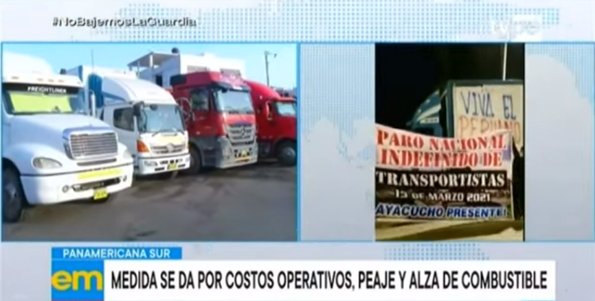 En el kilómetro 18.5 de la panamericana sur, inició el paro indefinido del Gremio Nacional de Transportistas y Conductores del Perú para exigir la eliminación del Impuesto Selectivo al Consumo (ISC) aplicado al petróleo. De la misma manera, también piden la reducción del costo de los peajes y mejoramiento de la infraestructura vial en la panamericana norte y sur.