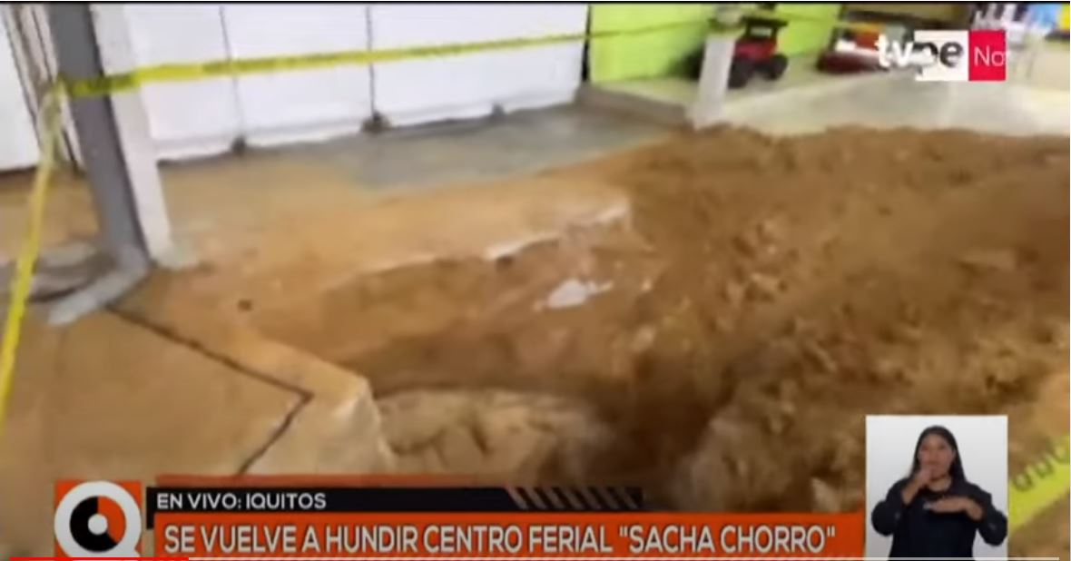 El centro ferial Sachachorro, en Iquitos, vuelve a verse afectado por el hundimiento del suelo. Hay zonas donde la tierra se abre y deja forados de gran tamaño.