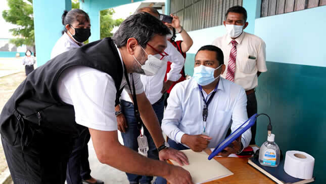 El ministro de Educación también visitó el colegio Javier Pérez de Cuéllar, en el distrito de Aguas Verdes, y, luego de supervisar el proceso de capacitación de docentes en la instalación y actualización del gestor de contenidos pedagógicos de Aprendo en Casa en las tablets sin conectividad, destacó el compromiso de los maestros para sacar adelante el año escolar pese a las dificultades generadas por la pandemia.