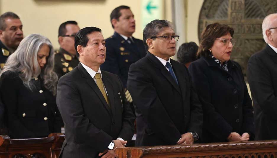 A la ceremonia religiosa acudieron, además, el ministro de Justicia, Juan Alcántara, y autoridades del sistema judicial; y los comandantes generales del Ejército, Marina de Guerra y Policía Nacional del Perú; así como representantes del cuerpo diplomático acreditado en el país.