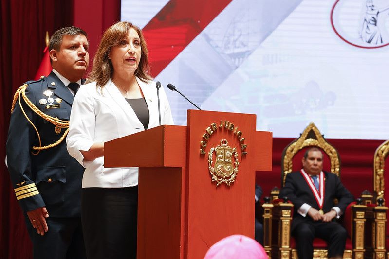 La jefa de Estado remarcó que los peruanos aspiran a contar con una justicia que investigue y sancione la corrupción, que sea imparcial y célere, que proteja a los vulnerables y ampare a todos los peruanos y peruanas, al margen de su origen y condición.