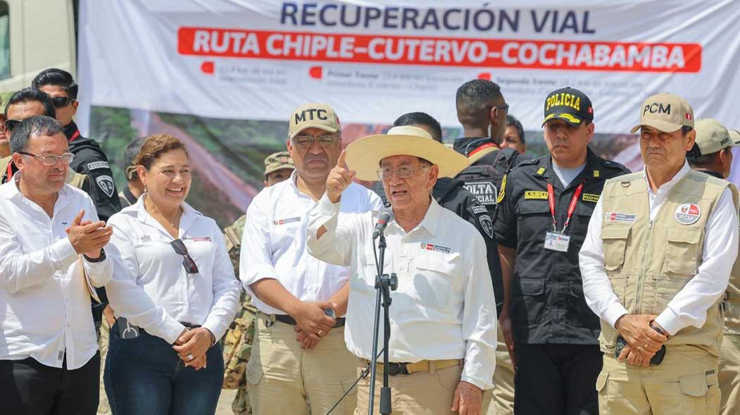 Presidente José María Balcázar inspeccionó trabajos en la vía Cutervo-Chiple, en Cajamarca. Foto: Presidencia.