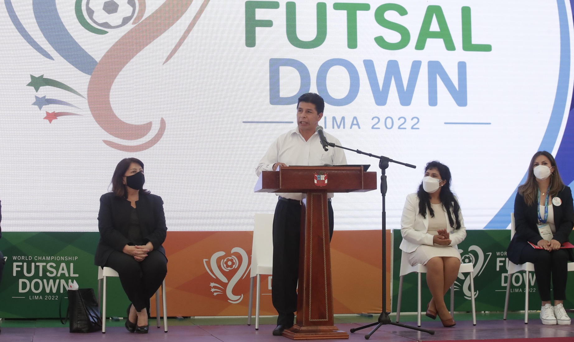 Durante la inauguración de la Tercera Copa del Mundo de Futsal Down - Lima 2022, el presidente de la república, Pedro Castillo, afirmó que el deporte no excluye ni tiene fronteras, más bien une y enseña valores como trabajar en equipo.