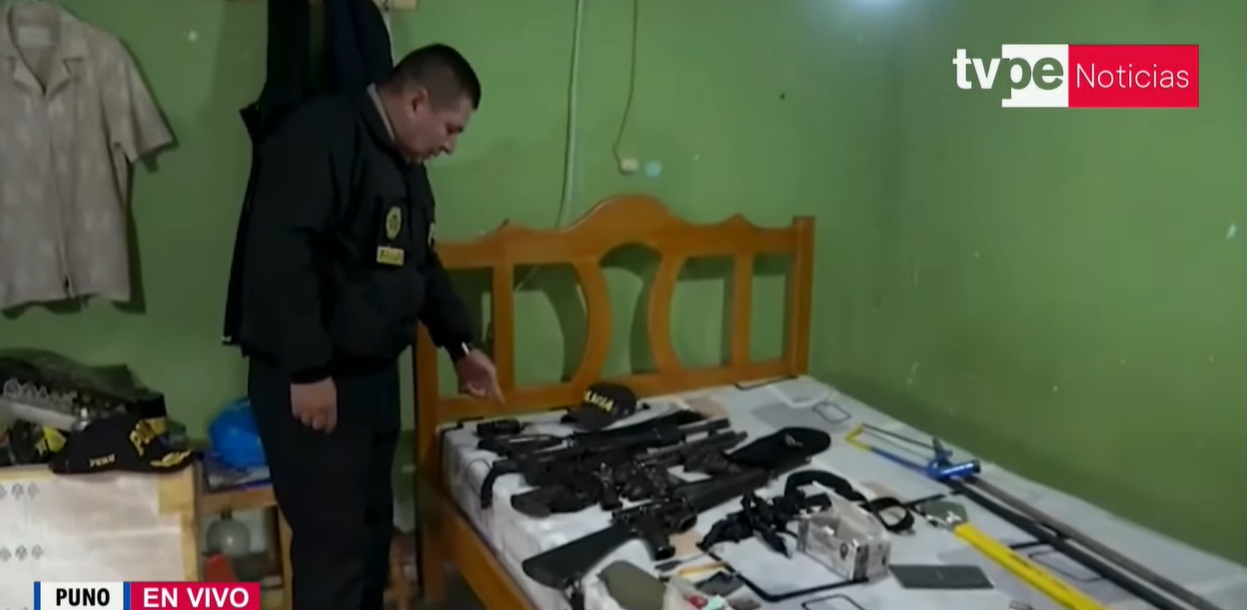 En Juliaca, Puno, agentes de la Policía Nacional (PNP) incautaron un arsenal de armas en un operativo donde detuvieron a un integrante de la banda criminal Los Gatilleros de Juliaca, en una vivienda ubicada en el jirón Mama Ocllo.