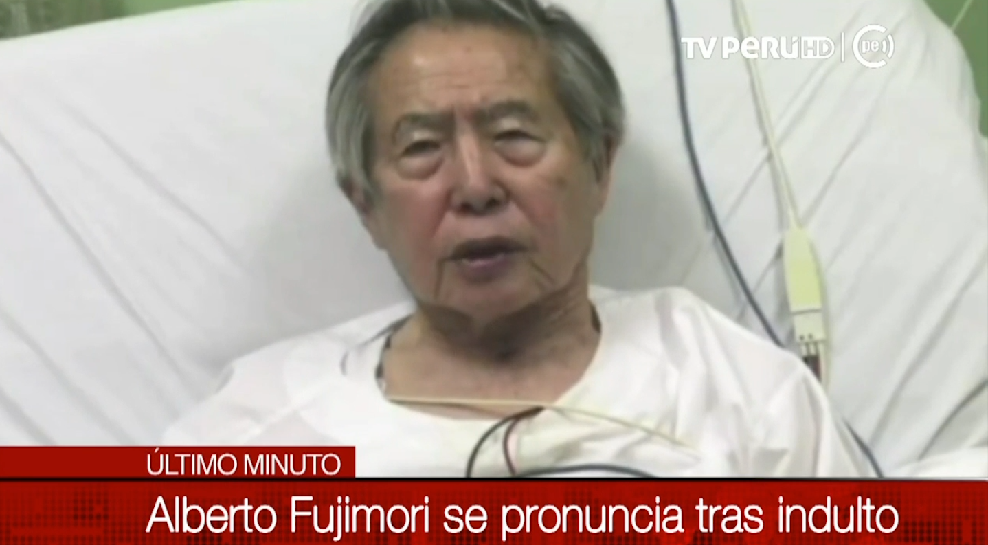 El expresidente Alberto Fujimori se pronunció hoy por primera vez desde que recibió el indulto humanitario concedido por el jefe de Estado, Pedro Pablo Kuczynski, desde la clínica donde se encuentra internado.