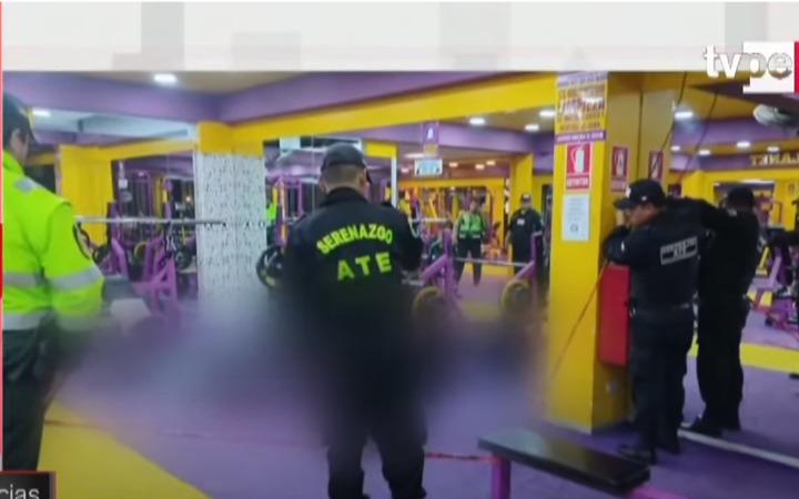 Policía Nacional llegó al gimnasio Fitness Planet, donde fue asesinado un bombero. Foto: TVPerú Noticias.