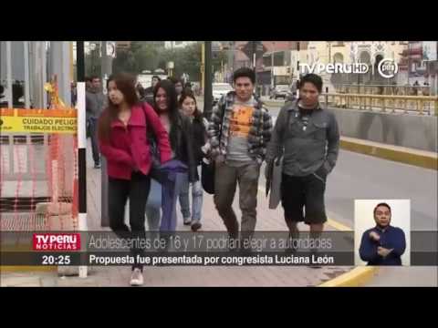 La congresista Luciana León, del Partido Aprista Peruano, presentó un proyecto de ley que propone que los adolescentes de 16 y 17 años puedan votar en las elecciones de manera voluntaria. La iniciativa busca fomentar la participación política en los jóvenes, según el proyecto de ley que es respaldado por los legisladores Javier Velásquez Quesquén y Jorge del Castillo.
