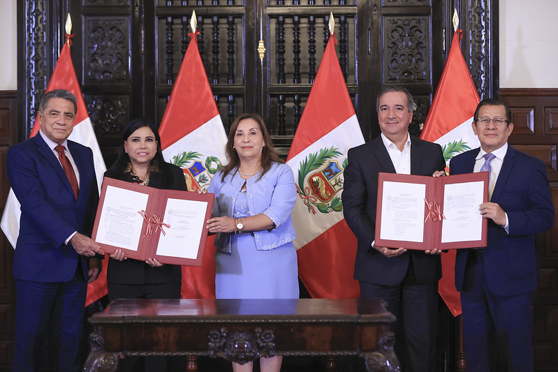 La jefa de Estado agradeció a los legisladores por la aprobación de estas dos leyes. “Los insto a seguir trabajando en esta ruta, por un Perú más justo, próspero y con mayores oportunidades para todas y todos”, indicó la mandataria, durante la ceremonia de promulgación de la norma, en la que estuvieron presentes los ministros de Transportes y Comunicaciones, Raúl Pérez-Reyes, y de Comercio Exterior y Turismo, Elizabeth Galdo.