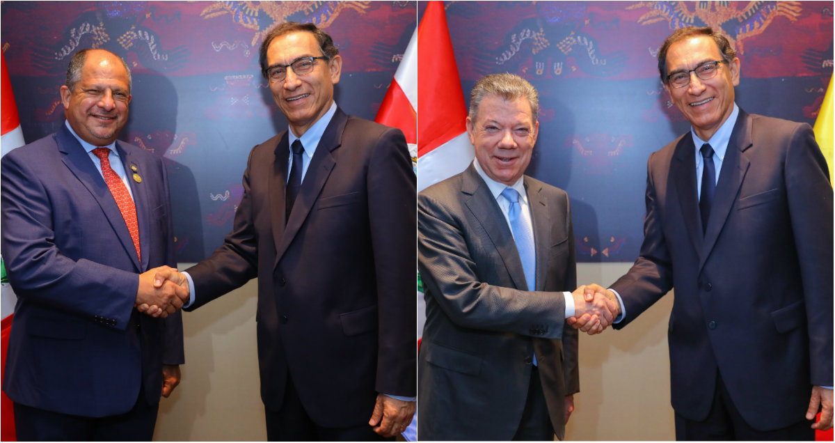 El presidente de Perú, Martín Vizcarra, también se reunió hoy con sus homólogos de Costa Rica y Colombia, Juan Manuel Santos y Luis Guillermo Solís, respectivamente, en el marco de las actividades previas a la VIII Cumbre de las Américas.