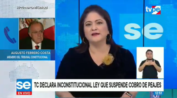 Magistrado Ferrero se pronuncia tras declararse inconstitucional ley que suspende cobro de peajes