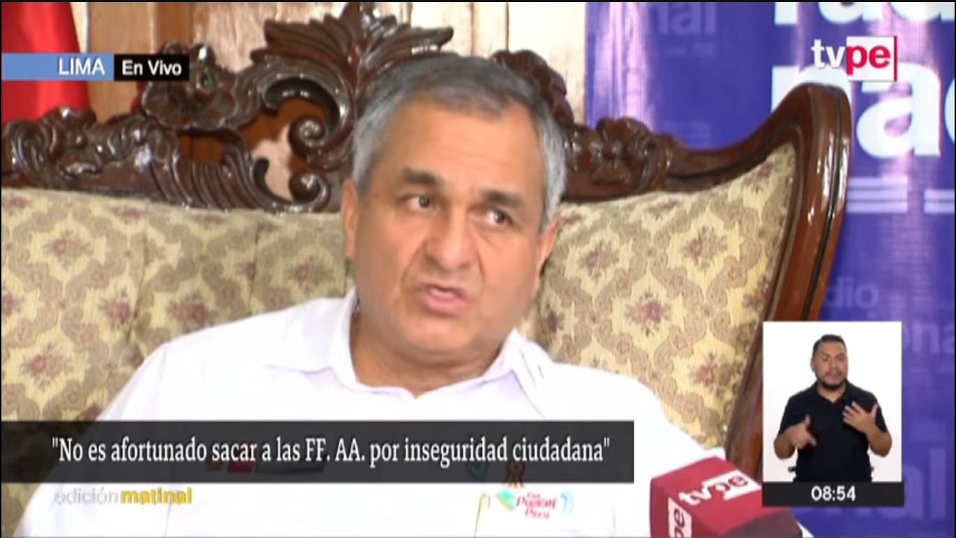 En tanto, también se mostró en contra del pedido que hizo el alcalde de San Juan de Lurigancho, Jesús Maldonado, de que las Fuerzas Armadas puedan intervenir en su distrito ante la falta de personal policial contra la delincuencia.