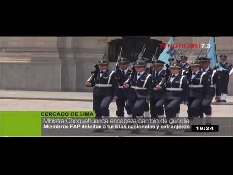 La ministra de la Mujer y Poblaciones Vulnerables (MIMP), Ana María Choquehuanca, encabezó este domingo el Cambio de Guardia en la sede de Palacio de Gobierno. Durante el Cambio de Guardia, mujeres y hombres oficiales de la Guardia Histórica de la Fuerza Aérea del Perú (FAP) hicieron gala de su destreza en el manejo de las armas.