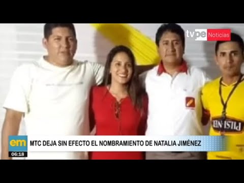 El Ministerio de Transportes y Comunicaciones (MTC) dejó sin efecto el nombramiento de Natalia Jiménez Velásquez por no cumplir con el perfil establecido en la norma interna para ocupar el cargo de directora ejecutiva de Provías Descentralizado.