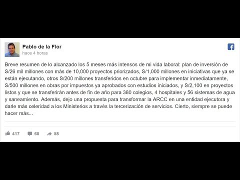 Pablo de la Flor, quien renunció al cargo de director ejecutivo de la Autoridad para la Reconstrucción con Cambios, utilizó hoy su cuenta de Facebook para pronunciarse en torno a su dimisión, tras desempeñarse por cinco meses en el puesto.