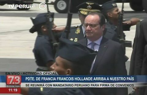El presidente de Francia, François Hollande, arribó esta mañana al Perú con la finalidad de cumplir una visita oficial, que incluye una reunión con su homólogo peruano Ollanta Humala.