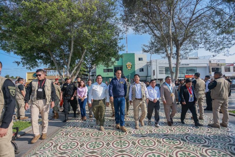 Como parte de su visita oficial a la región Ica, el presidente de la república, José Jerí Oré, lideró la ceremonia de izamiento del pabellón nacional y la entonación del himno nacional en la ciudad de Pisco.