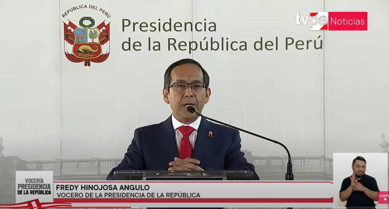 Vocero presidencial, Fredy Hinojosa, explicó que la Contraloría fiscaliza las declaraciones juradas de la presidenta Dina Boluarte, pero no existe desbalance patrimonial. Foto: TVPerú Noticias.