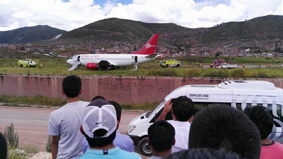 Los pasajeros y tripulantes fueron evacuados por los bomberos y personal del aeropuerto del Cusco a través de los toboganes de seguridad.
