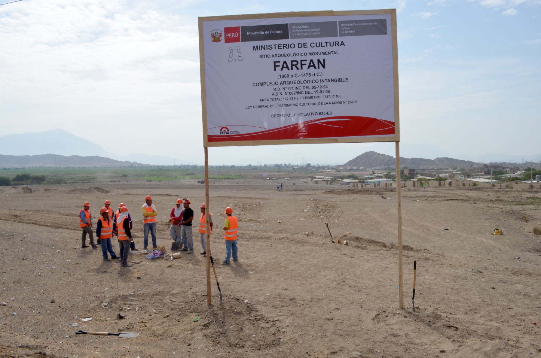 La Dirección Desconcentrada de Cultura de La Libertad y la Procuraduría Pública, en coordinación con la Municipalidad Provincial de Guadalupe y la Policía Nacional, ejecutó un desalojo en el complejo arqueológico Farfán, ubicado en la localidad de Ciudad de Dios, distrito de Guadalupe, provincia de Pacasmayo, región La Libertad.