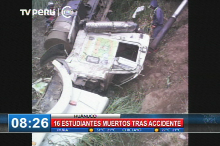 [Actualizado] En Huánuco, escolares, padres de familia y profesores fallecieron debido a que un volquete en el que se trasladaban cayó a un abismo en el distrito Cahuac, provincia de Yarowilca, Huánuco. A 17 asciende al menos la cifra de muertos, mientras que los heridos son 54, confirmó Rubén Alva Ochoa, gobernador regional de Huánuco.