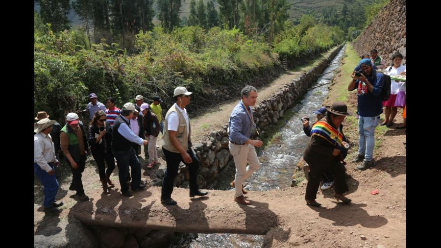 El ministro de Cultura, Salvador del Solar, entregó hoy los trabajos de restauración y puesta en valor de andenerías prehispánicas de Paracaipata en el distrito de Yucay, provincia de Urubamba, en la región de Cusco.