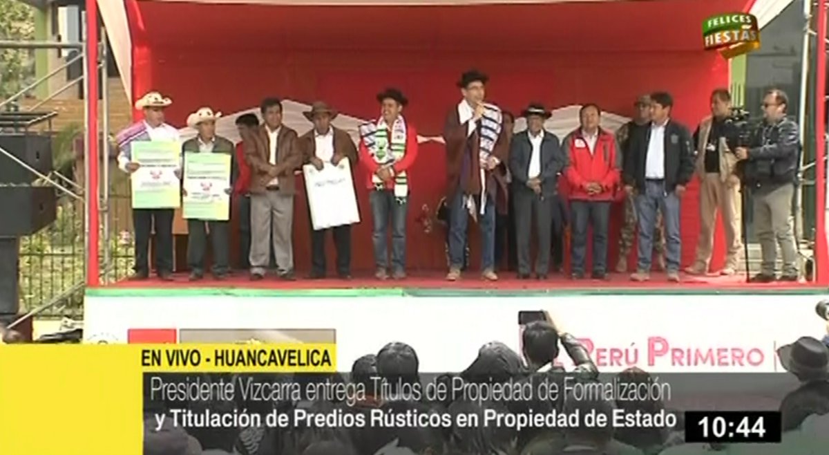 Desde Tayacaja, el presidente @MartinVizcarraC participa en la ceremonia de entrega de Títulos de Propiedad y Titulación de Predios Rústicos a ciudadanos de la región #Huancavelica. Sigue la transmisión aquí: https://t.co/CYAYQXuRtv pic.twitter.com/72EsAOpYJ9— Presidencia Perú (@presidenciaperu) 21 de diciembre de 2018