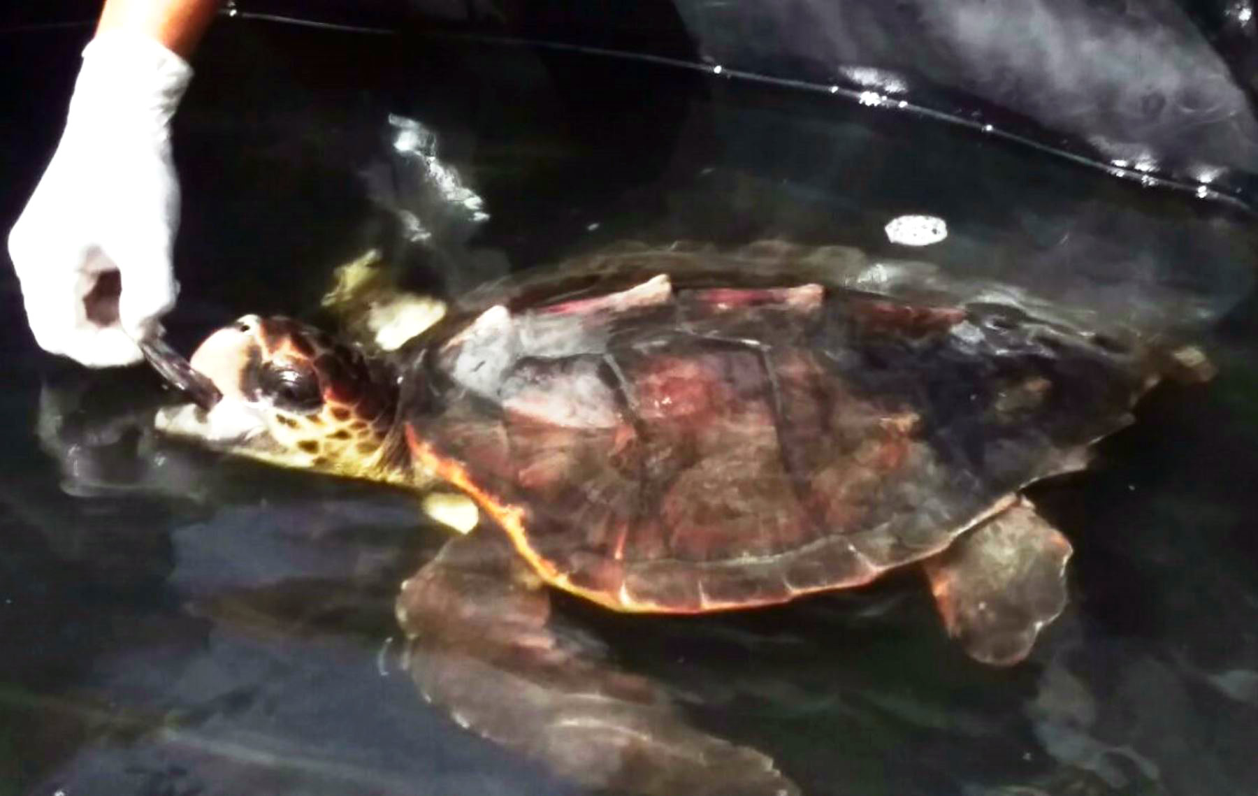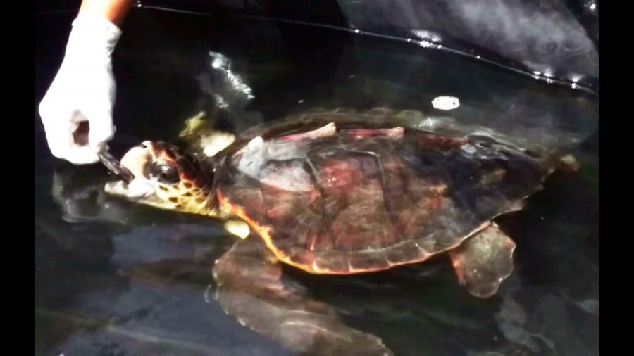 Los especialistas de la ATFFS, oficina descentralizada del Servicio Nacional Forestal y de Fauna Silvestre (Serfor), detallaron que la tortuga llamada “boba o cabezona” fue encontrada por un pescador de la zona hace tres semanas, tenía la aleta derecha muy dañada y presentaba una infección severa a nivel óseo ocasionado por los filamentos que componen el costal, debido a ello se le debió amputar parte de su miembro y así evitar una infección generalizada.