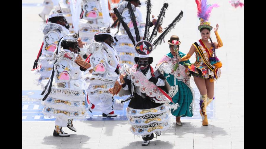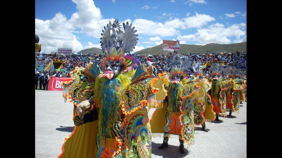 Un total de 20 conjuntos de danzantes se reúnen en el estadio Enrique Torres Belón, que es nuevamente el escenario de la presentación de coloridas y alegres danzas como la morenada, los caporales, la diablada, la tuntuna, entre otros.