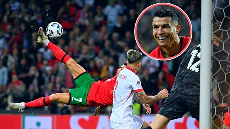 Cristiano Ronaldo anotó gol de chalaca en la goleada de Portugal ante Polonia