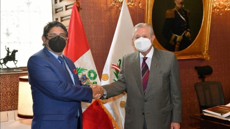 El canciller Óscar Maúrtua sostuvo hoy una reunión de trabajo con el presidente de la Cámara Nacional de Turismo (Canatur), Carlos Canales, a fin de profundizar los esfuerzos conjuntos para la reactivación del turismo nacional con apoyo de la red de misiones diplomáticas del Perú en el exterior.