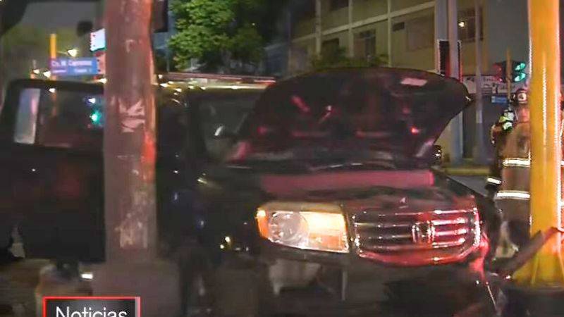 En Jesús María, una camioneta negra que circulaba a exceso de velocidad colisionó con un Toyota plateado en el cruce de Cayetano Heredia y Sánchez Cerro, lo cual provocó un choque múltiple. La camioneta volcó y bloqueó la vía, los bomberos llegaron a intervenir.