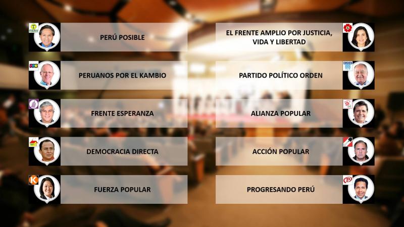 ‘Acción Popular’, ‘Peruanos por el Kambio’, ‘Frente Amplio’, ‘Perú Posible’, ‘Alianza Popular’ y ‘Alianza para el Progreso’ pidieron garantías a la Oficina Nacional de Gobierno Interior (Onagi) para realizar sus respectivos cierres de campaña programados para los días 4, 6 y 7 de abril.